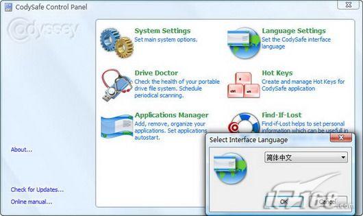 CodySafe默认为英文界面,对中文用户不太友好,我们首先调用中文界面。点击主窗口“Options”进入程序的控制面板,如图3。