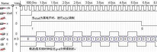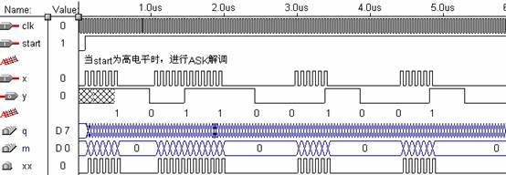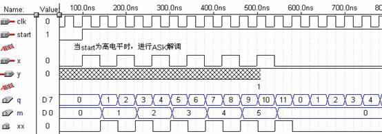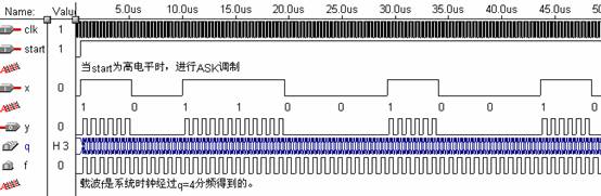 图8.9.7 ASK调制VHDL程序仿真图及注释