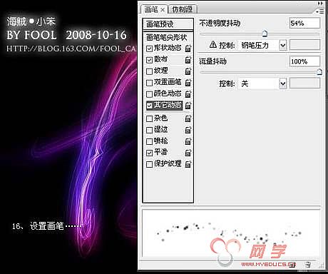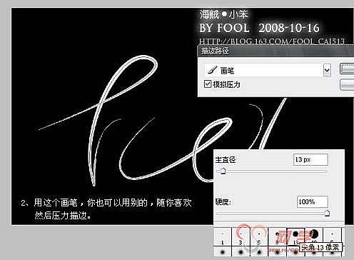2、新建一个图层,设置画笔,参数如下图,然后选择描边路径。