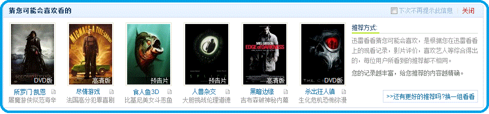 “猜你会喜欢”,虽然迅雷看看在这个推荐信息不一定能做到百分百猜得对,但是迅雷为每个用户都不同的推荐信息,给了用户一种被重视的感觉,而且标题标签的右边还允许用户关闭,还可以设置下次不显示,减少对用户的打扰。